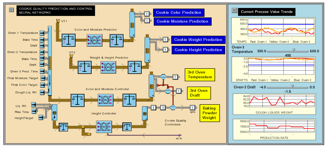 模塊可幫助工程師通過歷史過程數(shù)據(jù),快速建立和配置反映生產(chǎn)質(zhì)量和生產(chǎn)過 程關(guān)系的神經(jīng)網(wǎng)絡(luò)模型。NeurOn-Line 與現(xiàn)有的控制系統(tǒng)一同工作,以便給予操作員對(duì)控制過程和 產(chǎn)品質(zhì)量實(shí)時(shí)的監(jiān)測(cè)。它的實(shí)時(shí)神經(jīng)網(wǎng)絡(luò)和優(yōu)化能力能夠得到符合經(jīng)濟(jì)目標(biāo)的控制決策。