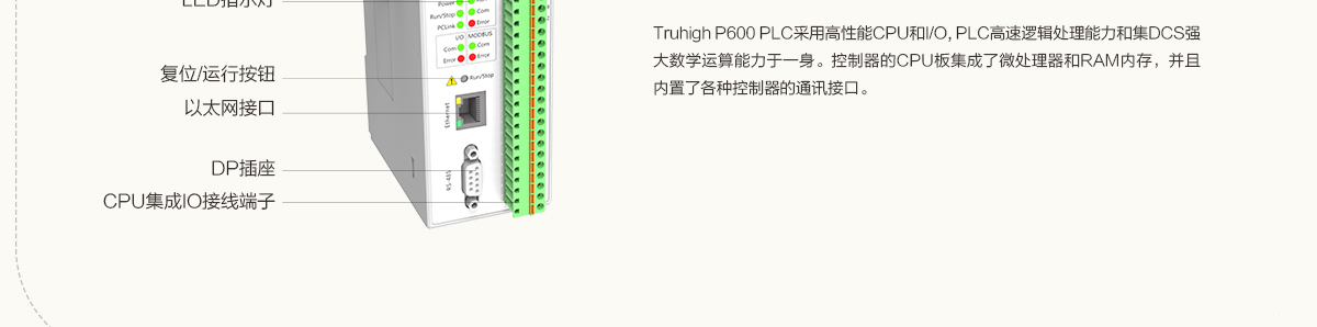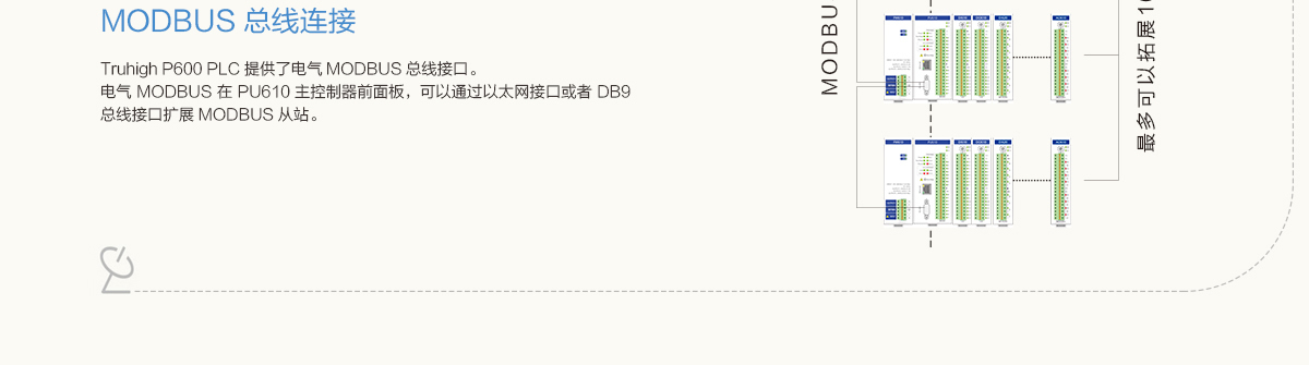 主控制器支持標準Modbus從站,集成高速輸入輸出